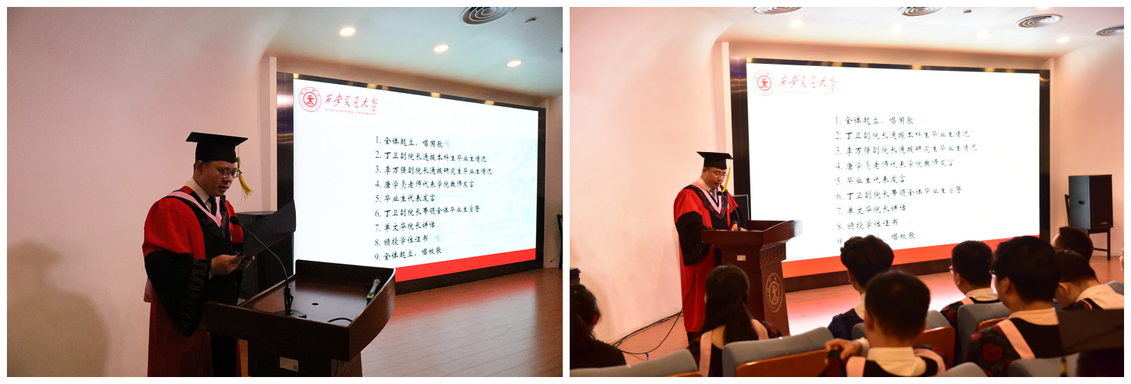 毕业典礼在庄严的国歌中开始。首先,丁卫副院长和李万强副院长分别通报了2021届本科生和研究生的就业情况。uwin电竞官网2021届本科生到国内外一流高校深造的比例较往年大幅增长,研究生中有20余名研究生选择留在西部地区到祖国最需要的地方建功立业,另有5名研究生录取为选调生,前往基层、奉献社会、服务人民,用青春书写华彩篇章。