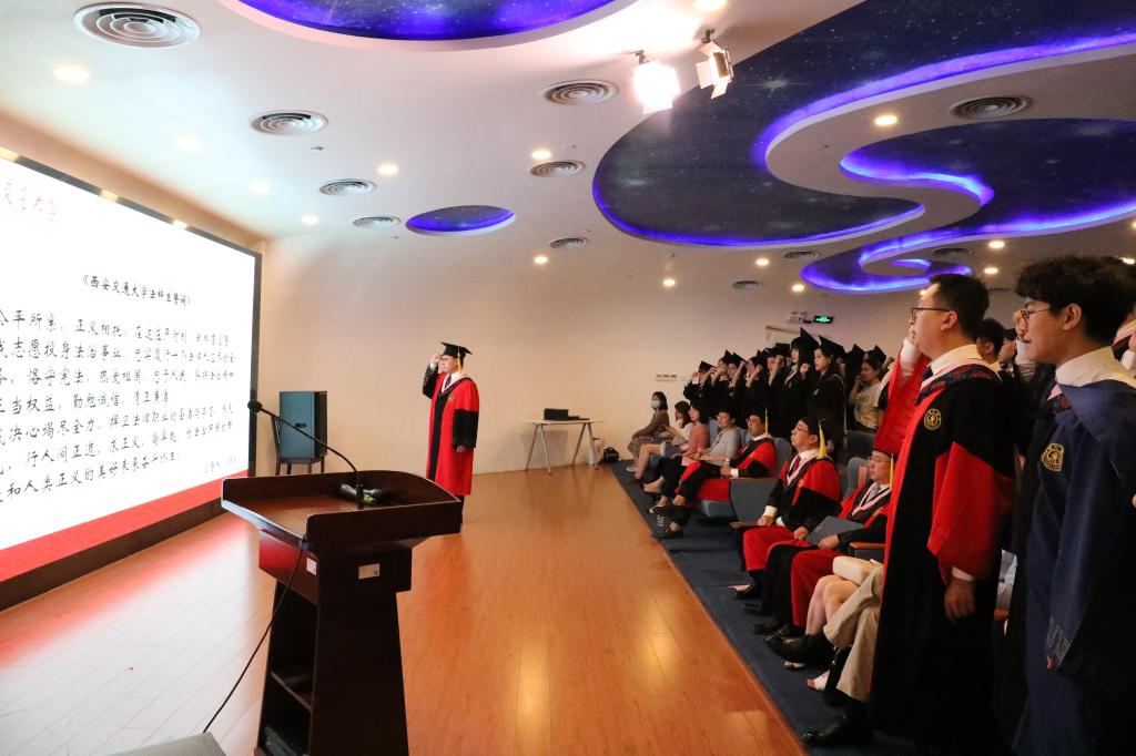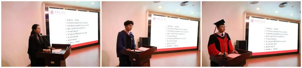 本科毕业生皮羽宏、硕士毕业生戴海洋和博士毕业生刘桢三位同学对学校、uwin电竞官网和老师们的辛勤培养表达了感恩和感谢。本科毕业生皮羽宏说感恩遇见交大uwin电竞官网、学院老师们以及身边的同学们;硕士毕业生戴海洋认为“西迁精神”是全体交大人的精神钙片,走到哪里,就能把“西迁精神”带到哪里;博士毕业生刘桢提到母校和uwin电竞官网所教授的“爱国爱校、追求真理、勤奋踏实、艰苦朴素”的优良学风、研风以及“德法兼修”的人生目标终将陪伴受益终生。
