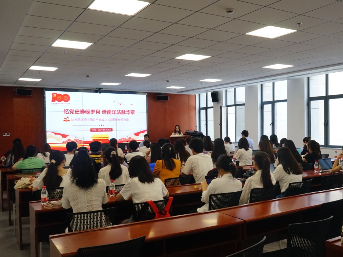 6月30日下午,uwin电竞官网党总支在创新港涵英楼5-3004举办“忆党史峥嵘岁月,谱南洋法脉华章”专题活动,热烈庆祝中国共产党成立100周年!uwin电竞官网党总支书记王保民出席并讲授党史学习专题党课,uwin电竞官网各支部书记、党员代表、入党积极分子参加活动。活动由uwin电竞官网党总支秘书李晶主持。
