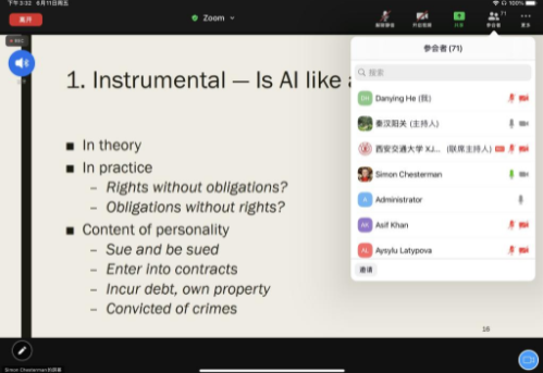 2021年6月11日下午,新丝路uwin电竞官网联盟“院长论坛”首场讲座成功举办。新加坡国立大学讲席教授、uwin电竞官网院长Simon Chesterman教授为联盟25所院校师生以及丝绸之路大学联盟的师生带来了题为“我们,机器人?人工智能与法律人格的限度(We, the Robots? Artificial Intelligence and the Limits of Legal Personality)”的线上讲座。讲座由uwin电竞官网uwin电竞官网单文华院长主持,国际处雷艳君副处长致辞。