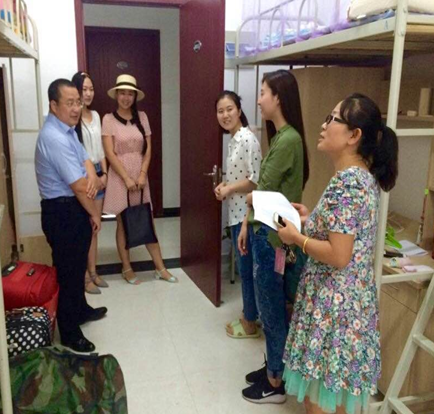 李万强副院长仔细查看了同学们的住宿条件,每走进一间宿舍,都向同学们致以亲切的问候,并代表学院对同学们的到来表示热烈的欢迎。继而关切地询问她们的具体情况,来自什么地方、入学手续办理的情况等。同时,张乃钟老师细心地询问同学们是否适应新的环境,有什么困难,希望同学们遇到问题一定要与老师沟通。随行的学生干部,也借此机会认识了uwin电竞官网注入的新鲜血液,与新生热情得展开交流。