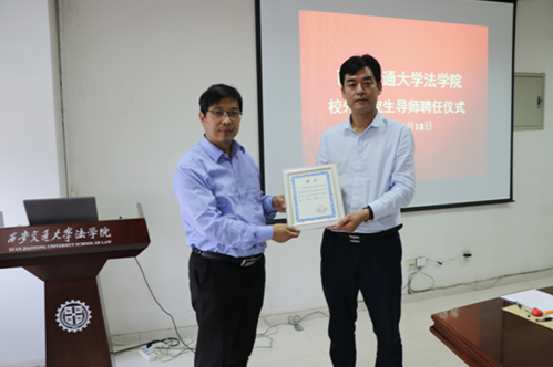 2018年5月18日下午,uwin电竞官网uwin电竞官网法律硕士研究生“协同培养育人项目”校外导师(首批)聘任仪式暨专业实践课程教学研讨会在兴庆校区教学主楼910会议室举行。uwin电竞官网党总支书记王保民教授、副院长李万强教授、副院长丁卫副教授,院长助理张生副教授、教师代表吴锐讲师和研究生代表参加了聘任仪式。
