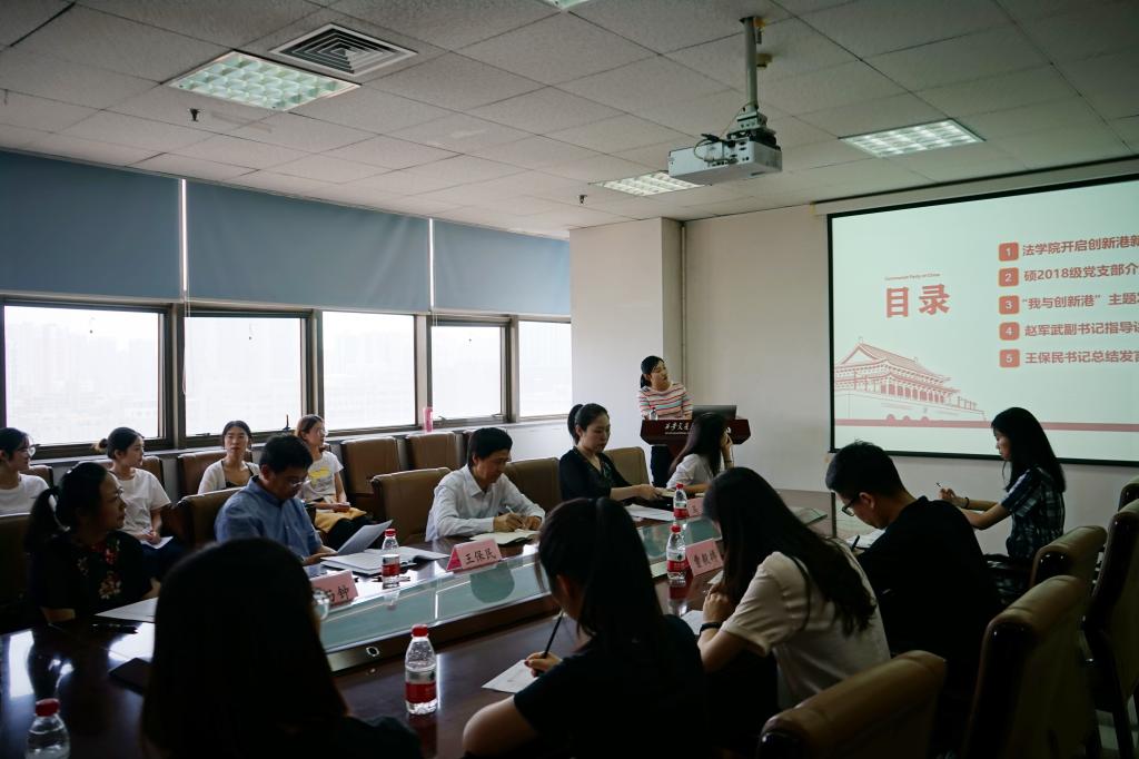 首先,全体参会人员观看了由uwin电竞官网党员制作的视频“入驻创新港,奔向新征程”,了解法学研究院内涵建设情况。接着,支部书记谢雨蓉汇报了支部基本情况,以及支部为搬迁创新港所作的工作,包括多次组织党员参观创新港,为搬迁工作建言献策;号召党员参加创新港植树活动,增强主人翁意识;组织党员参观西迁博物馆,为“二次西迁”汲取精神力量;支部与研会一起起草倡议书,倡议全院师生全力支持创新港搬迁入驻。