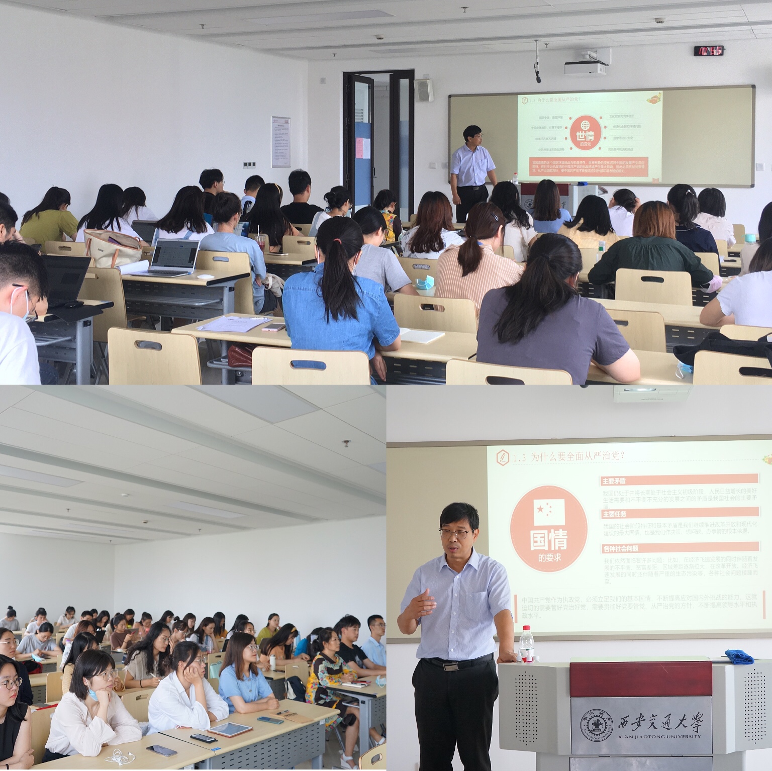 王保民书记以“全面从严治党,永远在路上”为主题,向广大党员同志和入党积极分子深入解读了全面从严治党的基本要求和重大意义。他从“为什么要全面从严治党、全面从严治党的历史沿革、具体内容以及怎么做”四个方面展开讲述。他首先介绍了“四个全面”的关系,指出全面从严治党是世情的变化、国情的要求和党情的需要,随后回顾了我党全面从严治党的历史沿革。接着他重点解读了全面从严治党的内容,强调全面从严治党要从“强化思想建党、严格选人用人、严肃作风建设、严明党章党纪、和严肃监督机制”等五个方面展开,并列举了“红通”案以及“打虎”“拍蝇”“猎狐”等多个专项反腐活动,深入浅出地解释了“全面从严治党治什么”的问题。最后他强调,全面从严治党到底怎么做?重点要把握三个方面,即要科学理解党的建设新常态、要主动适应党的建设新常态、要着力打造党的建设新常态。王书记的党课,既有严肃的理论知识,又有生动的案例讲解,一方面对广大党员进行了一次深刻的思想教育,另一方面在讲解过程中还结合学生党员实际表达了对青年党员同志的殷殷期望。党课结束,赢得了同志们的阵阵掌声。