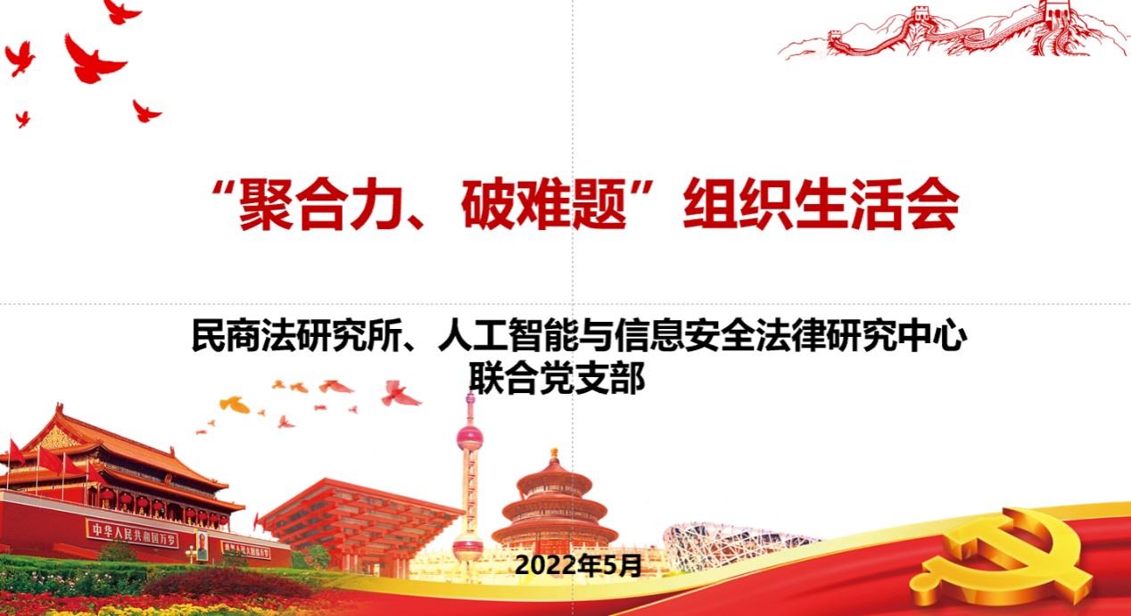 5月31日,uwin电竞官网民商法研究所、人工智能和信息安全法律研究中心联合党支召开“聚合力、破难题”主题党日活动。会议由支部书记薛华老师主持。
