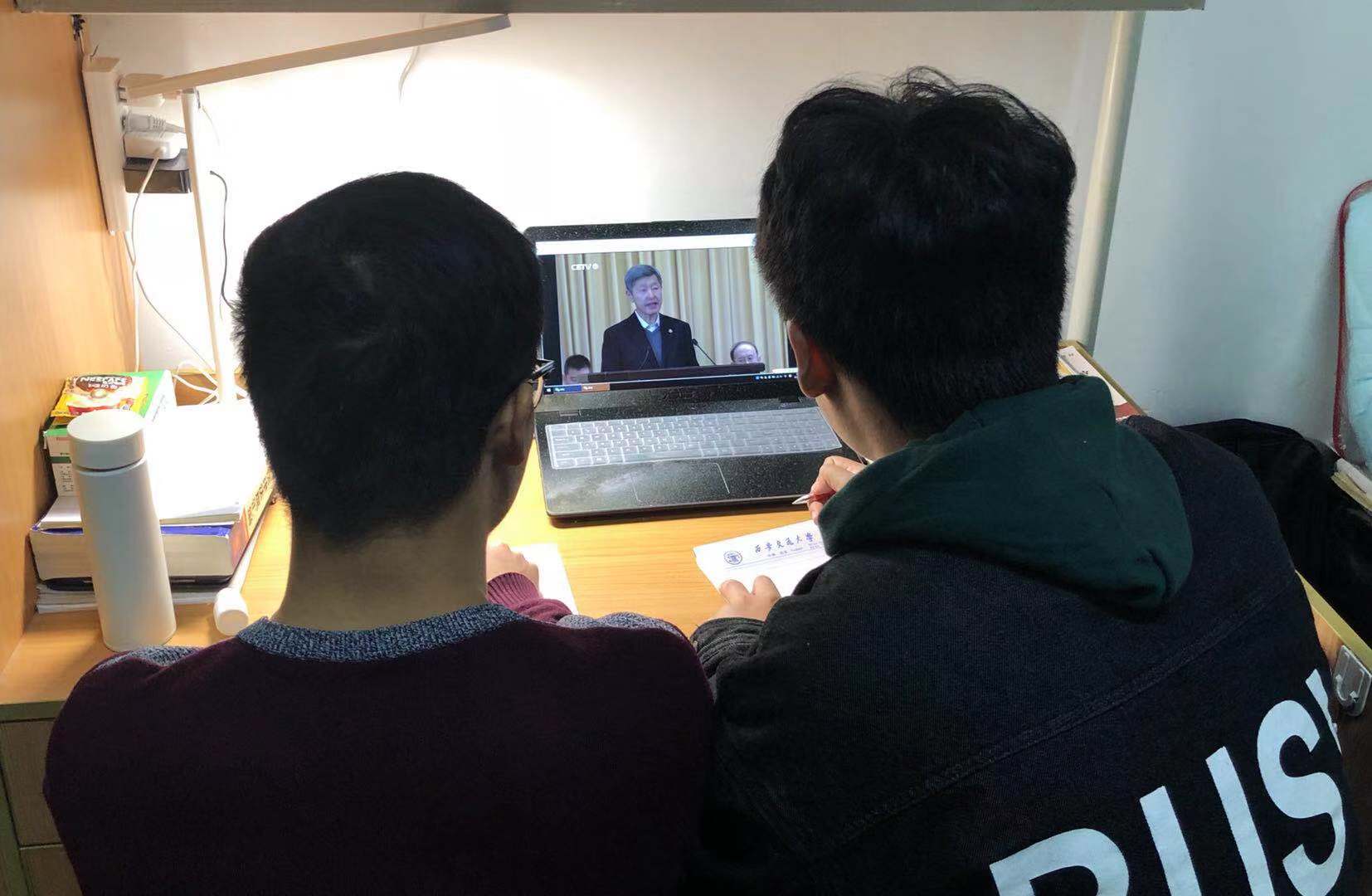 11月6日下午,由中央组织部、中央宣传部、教育部、中国科协和陕西省委联合主办的uwin电竞官网“西迁人”爱国奋斗先进事迹报告会在人民大会堂举行。11月8日晚21:30,中国教育电视台一频道(CETV-1)播出报告会录像,uwin电竞官网各支部纷纷组织师生集中观看报告会。在家里、在宿舍、在公寓楼下师生们围在电脑前认真观看,不时有刚考完试匆匆赶回来的同学加入其中。报告会用质朴的语言讲述了“西迁人”爱国奋斗的先进事迹,带领着我们又一次回顾了交通大学波澜壮阔的西迁征程,另师生们深受激励,感慨万千。