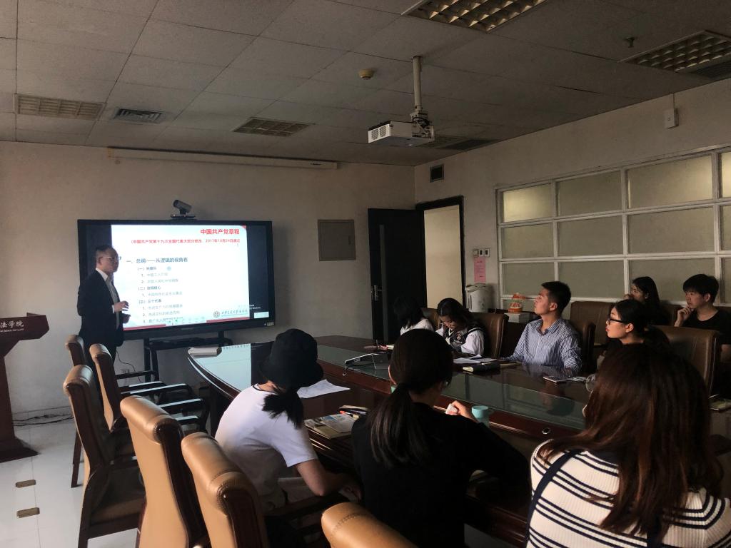 9月27日,uwin电竞官网硕9159党支部在创新港开展“不忘初心,牢记使命习近平新时代法治思想读书交流会”,李万强副院长参加学习交流。⾸先,⽀部书记⻢燕⻜和⼤家分享了习近平新时代中国特⾊社会主义法治思想的形成、发展历程。随后,支部成员就《习近平关于“不忘初心、牢记使命”论述摘编》⼀书中学⽣个⼈应当要做的四个⽅面并结合自身实际展开交流,最后李万强副院长就法学学科建设以及人才培养、入驻创新港校区的重大意义以及法律⼈在中国大发展大变革时代需要做的努力等方面进行了解读,并对同学们提出了期望,鼓励同学们紧跟时代的浪潮,在理论创新的沃⼟上,把握机会,认真钻研,争取有所成就。