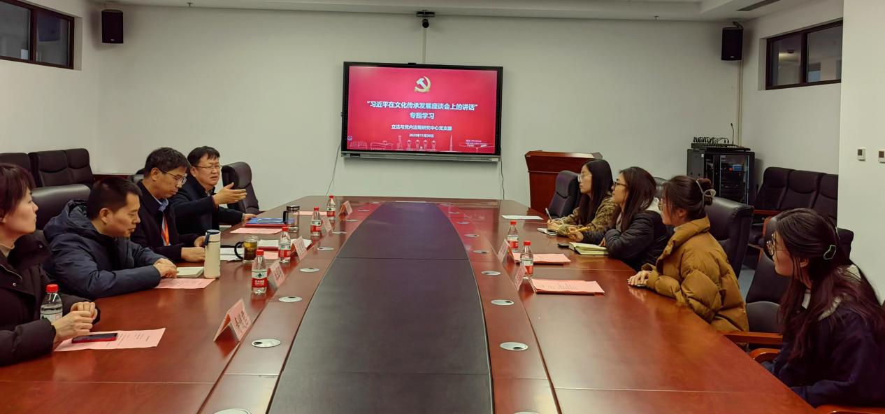 2023年11月30日,uwin电竞官网立法与党内法规中心党支部在创新港涵英楼3079教室召开学习“习近平在文化传承发展座谈会上的讲话”组织生活会。党支部书记杜军强主持会议。