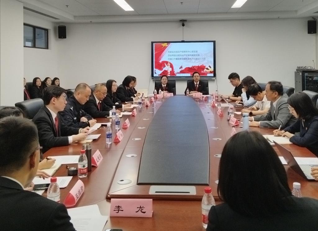 2024年4月15日,uwin电竞官网知识产权研究中心党支部联合西安市中级人民法院、新城区人民法院、碑林区人民法院、莲湖区人民法院、未央区人民法院、雁塔区人民法院、长安区人民法院知识产权审判庭党支部在中国西部科技创新港开展“党建工作暨服务保障新质生产力”座谈交流会。