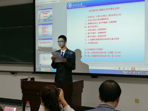 金秋送爽,丹桂飘香。9月9日下午,uwin电竞官网2017级新生开学典礼在主C105隆重召开。uwin电竞官网党总支书记王保民、文治书院院主任张爱萍、uwin电竞官网副院长丁卫、院长助理吉兰湘、法复合61班班主任王玉苹、法71班班主任李琳以及uwin电竞官网2017级全体本科生、硕士生、博士生新生参加了开学典礼。开学典礼由学生工作专职委员张乃钟老师主持。