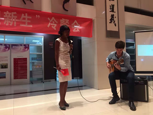 冷餐会上,uwin电竞官网师生在品尝美味的水果、点心的同时,一起欣赏了师生们带来的精彩表演。来自马里的留学生吴茜同学带来一首充满异域风情的民族歌曲,让同学们领略到不同文化的色彩。来自澳大利亚的留学生多米尼克和研一新生刘静洁分别用英语和法语共同演绎了诗朗诵《再别康桥》。中文经典诗歌在其他语言的演绎下显得别具一格。研一新生唐雅雯身着中国古典服装,向留学生们展示了我国传统舞蹈《惊鸿舞》,令人惊艳。研一新生蒲凯云、刘敏丹、田思艺,本科新生吴彦博分别为大家带来了动听的歌曲,赢得了现场的喝彩与掌声。在欢乐的气氛中,吉兰湘老师用日语为大家演唱的歌曲《我只在乎你》,赢得大家的阵阵掌声;张乃钟老师演唱的豫剧选段《谁说女子不如男》,字正腔圆、韵味醇厚,受到了师生们的热烈欢迎。