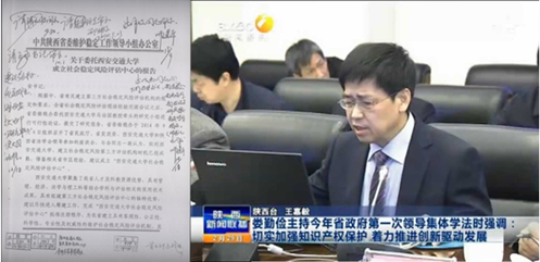 除此之外,在马治国教授团队一系列研究成果的基础上形成的《关于委托uwin电竞官网成立社会稳定风险评估中心的意见》经过陕西省委政法委书记安东等多位领导的相继审阅后也得到了陕西省委赵正永书记“建议很好,如要成立,应属西安交大内部的研究机构,以交大同意为准”批示。目前该机构已经设立运行,为我省风险评估开展了有益的探索,为我省经济社会发展保驾护航。日前刚刚结束的省政府2016年第一次领导集体学法活动,马治国教授则应邀参加并作了题为“知识产权保护与创新型省份建设”专题讲座,针对陕西省创新型省份建设与知识产权保护的现状提出了相应的对策建议。受到了娄勤俭省长的高度评价:所提出的建议措施具有很强针对性,要求各相关部门应尽快落实;所列举的案例切合实际,给人启发。