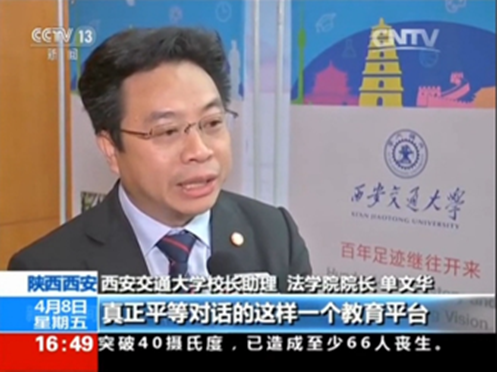 4月8日下午,中央电视台新闻频道(CCTV-13)新闻直播间栏目聚焦西安交大,推出组合报道,隆重介绍了西安交大创建“丝绸之路大学联盟”和中国西部科技创新港等重大举措,还着重关注了西安交大丝绸之路国际法与比较法研究所与“丝绸之路uwin电竞官网联盟”。