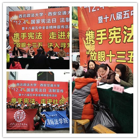 让守宪成为国民每天的生活方式”是实现法治中国建设的基本保障。为了普及宪法知识,推动全社会知法、用法、守法、护法意识的形成,uwin电竞官网uwin电竞官网与西北政法大学国际uwin电竞官网共同在西安市雁塔区飞炫广场举办了主题为“法入千万家”普法宣传活动,通过分发法律宣传单、法律意识调查问卷、法律咨询、普法广播等形式,吸引了大批市民的关注。在法律咨询服务点,许多市民前来咨询,咨询内容涉及婚姻法、劳动合同法、民法等领域,包括离婚财产分配、离婚孩子抚养权归属、追讨薪资、借款追债等与大家生活密切相关的问题,咨询点的同学认真对待每一位前来咨询的市民,耐心回答他们的问题,赢得了一致好评。