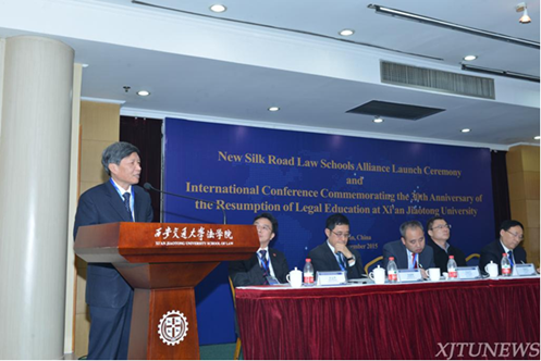 中国法学会副会长张文显代表中国法学会、中国法学教育研究会对西安交大法学学科复办三十周年和“新丝路uwin电竞官网联盟”的成立表示祝贺。他说,西安交大办学历史悠久,是我国最早开展法学教育的高等教育机构,为国家培养了大批杰出法学人才。自1985年复办法学学科以来,西安交大uwin电竞官网现已成长为中国法学研究的重要基地之一,为中国法学建设做出了突出贡献。随着“一带一路”战略构想的提出,国内法制与国际法制深度融合也必将呈现出更大、更新的趋势,因此“新丝路uwin电竞官网联盟”成立的意义重大,前景广阔。他希望联盟成员能同心协力,将联盟办成具有国际影响力和现实感召力的uwin电竞官网校交流合作的平台,成为我国法学教育对外交流合作和国际法学交流互联互通的新门户。中国法学会将对其给予重点关注和支持。
