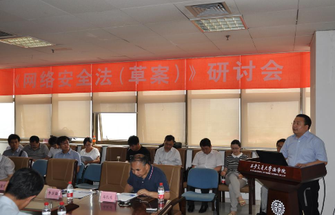 2015年6月,第十二届全国人大常委会第十五次会议初次审议了《中华人民共和国网络安全法(草案)》,在面向社会征求意见的同时,全国人大法工委专门致函uwin电竞官网信息安全法律研究中心向马民虎教授研究团队征求草案修改意见。7月16日,由陕西省法学会信息安全法学研究会、uwin电竞官网信息安全法律研究中心,联合公安部第三研究所、互联网实验室、中国法学会法律信息部举办的“《网络安全法(草案)》研讨会”在uwin电竞官网主楼E-910会议室召开,广泛听取理论界和实务界意见。