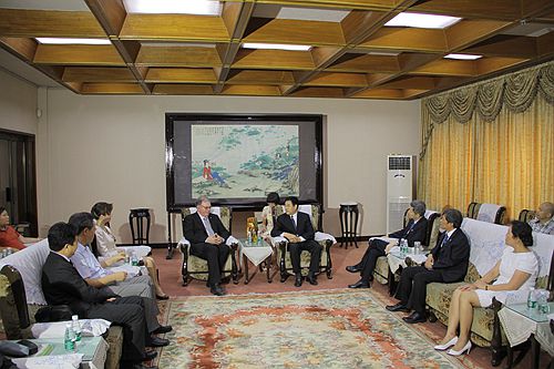 安东会见英国科学院院士克劳福德教授 张迈曾等一同会见