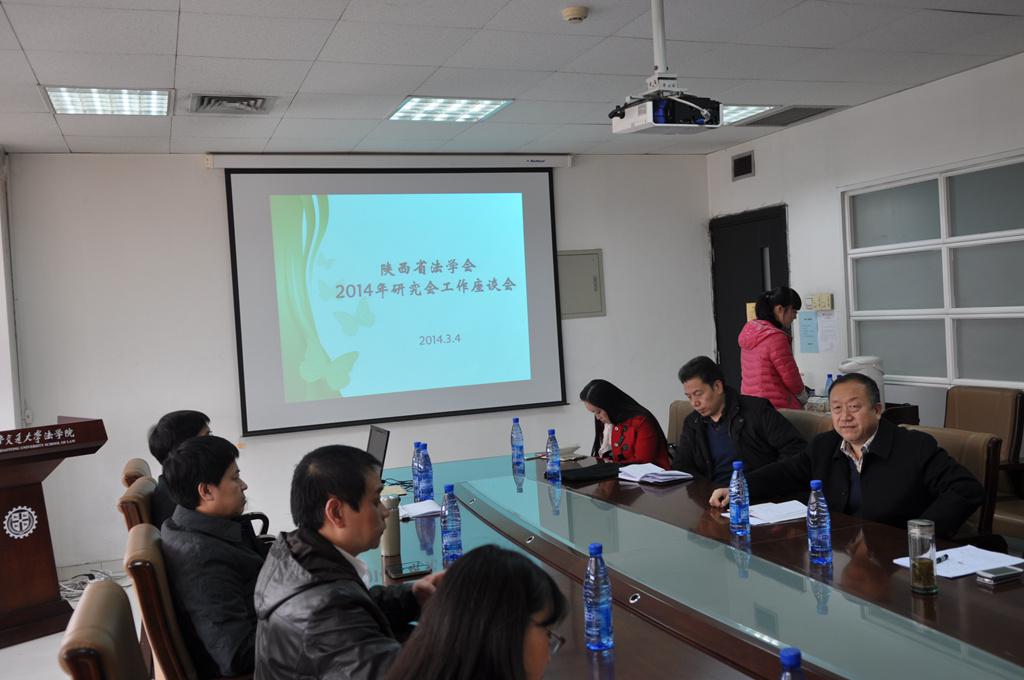 2014年3月4日下午,“陕西省法学会2014年研究会工作座谈会”在我校uwin电竞官网主E910会议室召开,陕西省法学会专职副会长雷宝生,秘书长马艾妮,研究部主任魏清利,办公室主任樊志来等法学会领导参加了会议。陕西省法学会挂靠我校uwin电竞官网的“科技法研究会”、“信息安全法研究会”、“立法学研究会”和“能源法研究会”的会长和秘书长应邀参加了座谈会。会议由陕西省法学会专职副会长雷宝生主持。