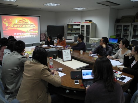 11月20日晚8点,uwin电竞官网举办了学习十八大报告法治思想研讨会,由学院副院长、知识产权研究中心主任马治国教授、李晓鸣讲师组织,部分博士、硕士参加。