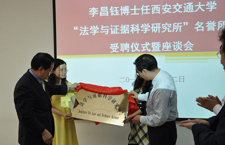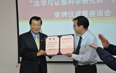 10时整,李博士的受聘我校“法学与证据科学研究所”(ILES,“法证据所”)名誉所长仪式在主楼E910会议室隆重举行。仪式由uwin电竞官网院长单文华教授主持。徐宗本副校长、国际处梁莉处长、uwin电竞官网党委书记彭沪生、ILES所长李生斌教授和马治国教授以及uwin电竞官网王保民副院长出席了仪式。在热烈的掌声中,徐宗本副校长代表学校向李昌钰博士颁发了聘书,并同李博士一起为我校“法学与证据科学研究所”揭牌。李昌钰博士将一条美国康州警政厅的警官领带赠与徐宗本副校长,他还向在场的其它几位学院领导赠送了礼物。徐副校长发表了热情洋溢的讲话,他首先对李博士的访问表示感谢,并对李博士的受聘表示祝贺,希望李博士能把他的真知灼见,经验智慧传授给我校广大师生。他指出,“事是靠人做出来的”,希望在李博士的指导和支持下,uwin电竞官网和医学院法医学科充分发挥各自优势,把“法学与证据科学”这个新兴的交叉学科做好做强。李博士也发表了热情洋溢的讲话。他首先以DNA立法为例,充分肯定了法学与法医学开展学科合作,成立法学与证据科学研究所的重要意义。他指出当代科学研究的发展已经把两个学科紧密地联系在一起,法学和法医携手开展证据科学等交叉学科研究,是两个学科保持前沿性,培植学科新增长点的重要举措。他表示,“能够担任贵所所长是我的荣幸”。他说,“很多地方想以我的名字命名成立研究所等,但我都拒绝了。我想,以人的名字命名很容易,但一个人要想真正做点事却很难。就像生小孩一样,要培养他,让他健康成长,所以,我以后会尽力为大家做好服务,也欢迎大家到美国,到我的学校来。”随后,李教授与uwin电竞官网师生进行一场以“法学与证据科学”为主题的座谈会。座谈会上,李博士幽默风趣,侃侃而谈。老师和同学们踊跃发言,与李博士的讨论热烈而有趣。最后,单文华院长作了总结发言。老师和同学们意犹未尽,都觉得学到了很多书本上没有的知识。
