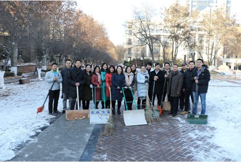 2018年1月8日下午,uwin电竞官网教工博士联合党支部召开组织生活会开展党员民主评议工作。会后,党员们在支部的倡议下纷纷走向户外积极清扫校园主楼西南角道路上的积雪。