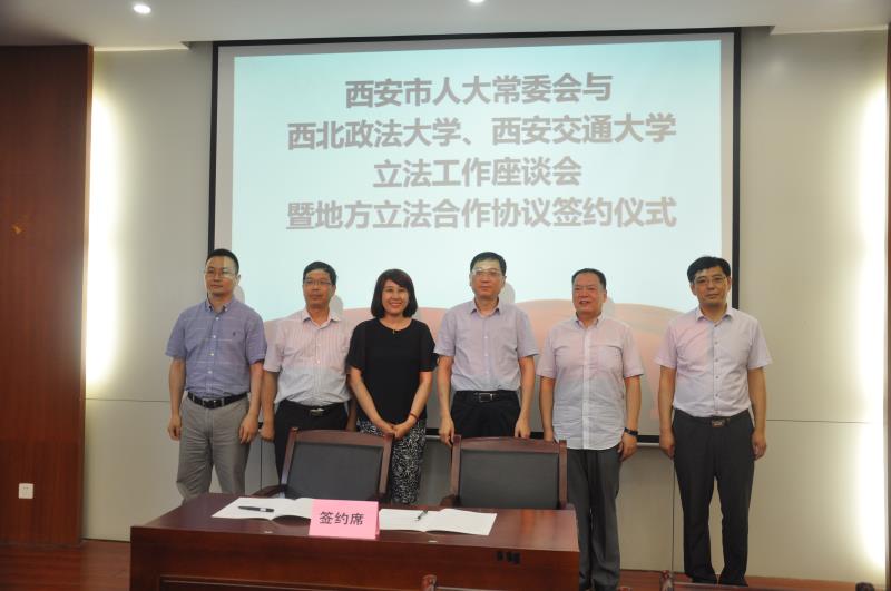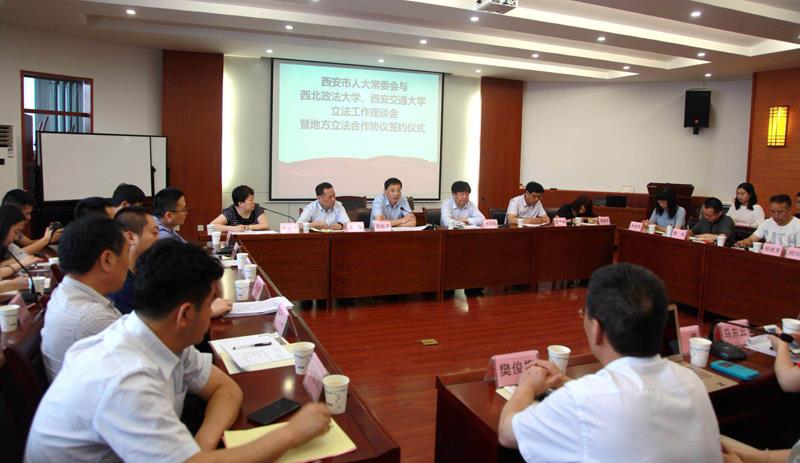 为深入贯彻落实党的十九大精神,推进科学立法、民主立法、依法立法,进一步提高立法质量,发挥高校专业优势,实现地方立法实践工作和法学教育研究的深度融合、相互促进、共同提升,助推法治西安建设,西安市人大常委会与西北政法大学、uwin电竞官网立法工作座谈会暨地方立法合作协议签约仪式”于6月20日上午在西北政法大学雁塔校区研究生综合举行。西安市市委组织部常务副部长、人大常委会副主任薛振虎,市人大法制委主任委员、常委会法工委主任牛犁和市人大常委会法工委其他领导,西北政法大学校长杨宗科,uwin电竞官网人文社科处处长贾毅华,uwin电竞官网立法与党内法规研究中心主任王保民和部分师生代表、西北政法大学立法研究所所长朱继萍和部分师生代表等参加了会议。
