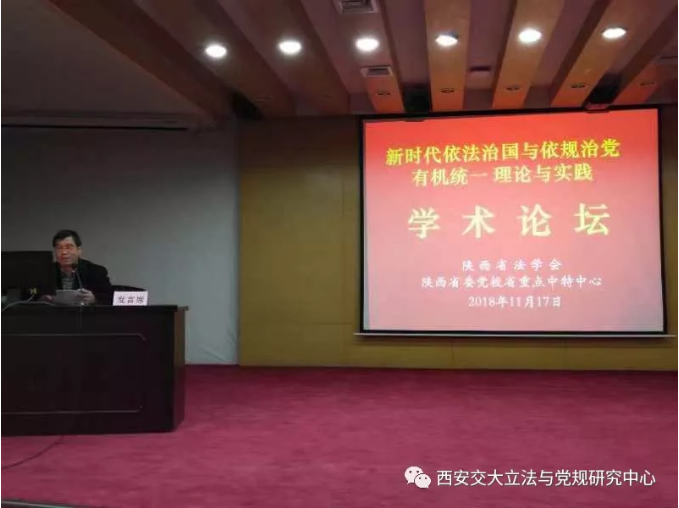 2018年11月17日,陕西省法学会党内法规研究会成立仪式暨“新时代依法治国与依规治党有机统一理论与实践”学术研讨会在陕西省委党校举行,王保民教授当选陕西省法学会党内法规研究会副会长,并在会上就《党内法规在制度反腐中的地位和作用》作重要发言。
