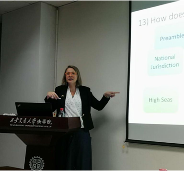 2018年12月14日,应uwin电竞官网uwin电竞官网李晓鸣副教授邀请,巴西FAESAuwin电竞官网教授,美国麦肯尼uwin电竞官网现任客座教授Stella Emery Santana来访我院,并为广大师生带来“公海环境保护”专题讲座,讲座由我院院长助理张生副教授主持,部分教师和博士生、研究生参与了讲座和互动环节。