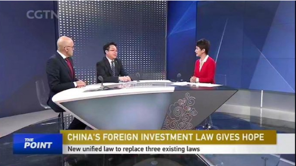 为回应国际关切,中国国际电视台(CGTN)邀请西安交大uwin电竞官网院长、最高人民法院国际商事专家委员会专家委员、中国国际经济法学会副会长单文华教授以及美国雷曼律师事务所主任律师Edward Lehman做客其王牌国际新闻评论栏目“欣视点(The Point with Liu Xin)”现场直播,就中国最新的统一外商投资法草案及其与中美贸易战的关系进行专家解读。