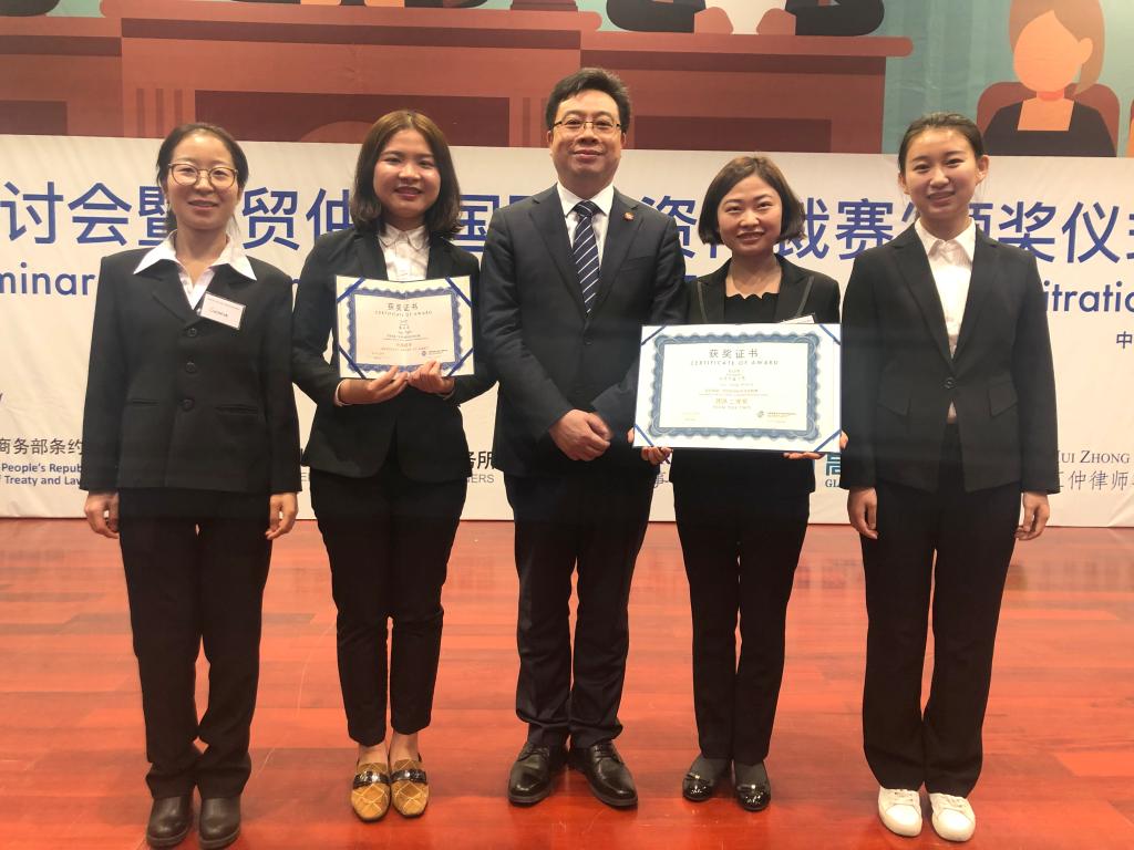 西安交大参赛队伍由2017级研究生张艳、2015级本科生李文鑫、廖倩以及2016级本科生熊平书组成,uwin电竞官网王朝恩、张生担任教练,单文华教授、李万强教授担任顾问,曾代表学校参加亚太地区第一届外国直接投资模拟法庭的队员王鹏博士和冯韵雅博士也提供了指导。队员们积极认真准备比赛,最终凭借扎实的投资专业知识,优秀的英语表达能力以及娴熟的法庭辩论技巧,获得仲裁员认可,在十四支代表队中脱颖而出,总分排名第四,获得团体二等奖,李文鑫和熊平书同学荣获“优秀辩手”称号。
