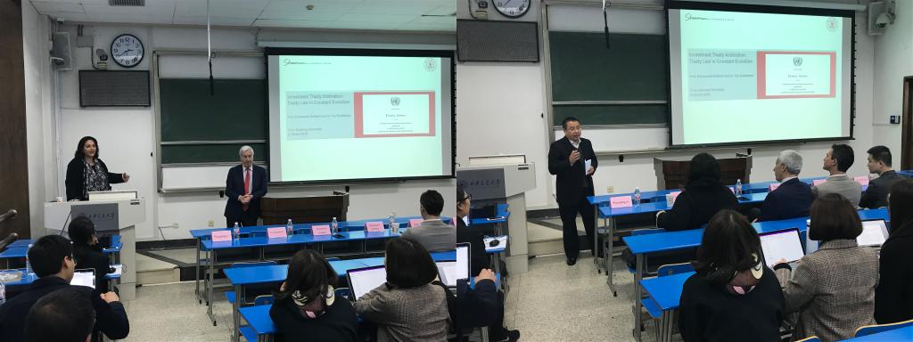 讲座由uwin电竞官网副院长李万强教授主持,李万强对Gaillard教授的来访表示热烈欢迎,并对双方今后的学术交流与合作寄予了很高的期待。讲座主要围绕三个部分展开,Gaillard教授介绍了“国际投资仲裁的历史背景”,随后介绍了世界主要国家投资条约核心条款内容的演变,包括美国投资条约范本、荷兰投资条约范本中关于“投资者”“投资”定义条款的变化,以及与之相关的“条约挑选”问题、“利益拒绝”条款和“临时适用”条款的解释问题等,尤其是从实务专家的视角讲述如何寻求投资者权益的保护。最后,Gaillard教授简要介绍了“投资仲裁和演变中的国际法的互动关系”。讲座期间,uwin电竞官网师生就如何区分“空壳公司”和“真实公司”“最惠国待遇”条款能否适用于程序性规定,以及外空活动是否属于投资条约中的“投资”等问题展开充分、热烈的讨论。Gaillard教授一一作了精彩回答。广大师生均表示通过此次讲座收益颇多,在今后的工作学习中不仅要重视理论知识的学习,更要结合实践中不断涌现的新问题加强学术思考。