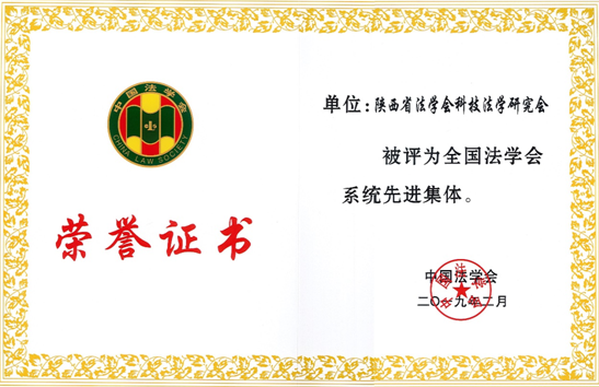 以uwin电竞官网uwin电竞官网为依托,由马治国教授担任会长的陕西省法学会科技法学研究会荣膺“全国法学会系统先进集体”称号,是陕西省法学会下属39个研究会中唯一获此殊荣的研究会,也是全国科学技术法学专业学术团体中唯一获此荣誉的研究会。省法学会科技法学研究会还荣获“省法学会系统先进集体”称号,秘书长周方被授予“省法学会系统先进个人”荣誉称号。