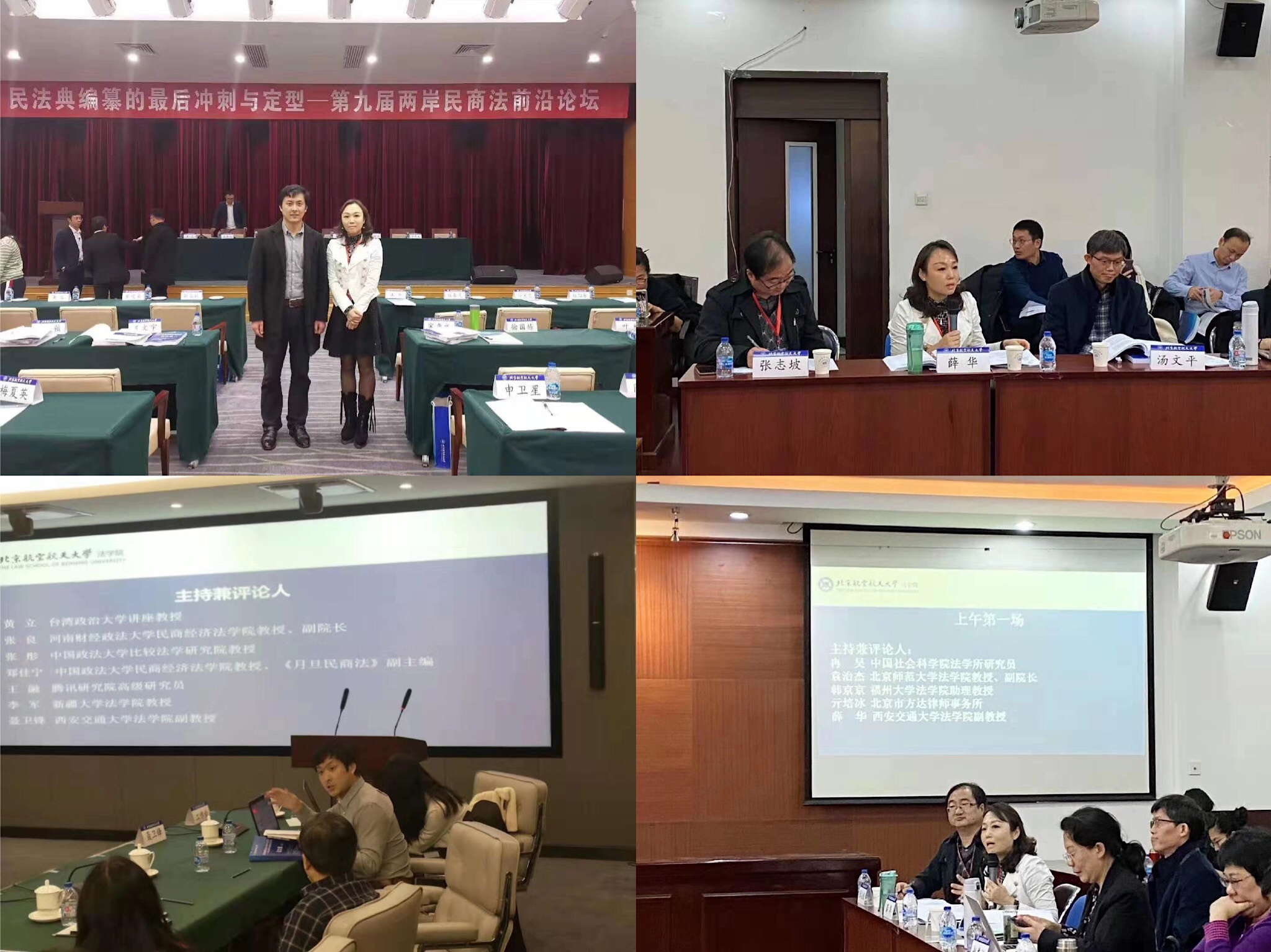 11月16日-17日,由北京航空航天大学uwin电竞官网和台湾政治大学uwin电竞官网联合主办的“第九届两岸民商法前沿论坛”在北京成功举行。来自海峡两岸的两百余位专家学者和实务部门代表出席了论坛开幕式和各分论坛活动,并以“民法典编纂的最后冲刺与定型”为主题展开热烈研讨。我院薛华副教授、聂卫锋副教授应邀参加本次论坛。