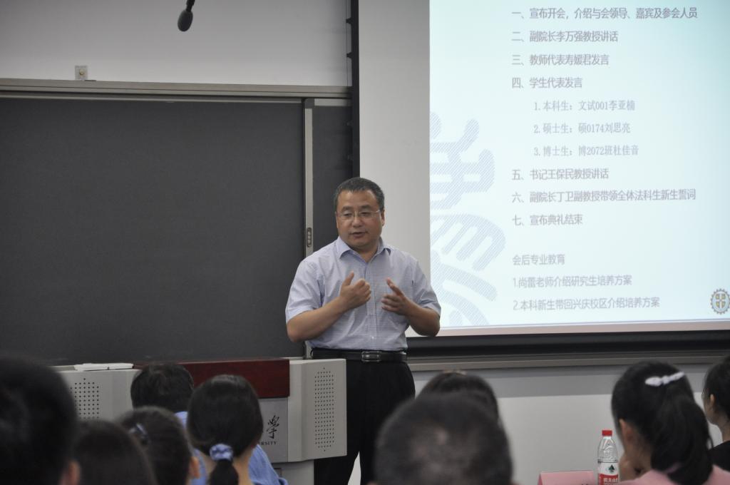 随后,uwin电竞官网党总支书记王保民教授发表总结讲话。他首先对各位新同学加入西交大uwin电竞官网表示热烈欢迎和衷心祝贺。其次他简要介绍了uwin电竞官网的发展情况和特色,即“成立虽短,但发展动能强大、发展迅速;招生数量不多,但人才培养特色鲜明、质量和社会认可度高;教师规模不大,但学历层次高、国际化程度高、成果卓著;虽是理工见长的大学办法学,但是学校平台高、办学条件和资源优越。最后王保民教授结合自身学生管理的经验,结合以往生动生活实例,对全体新生同学提出了几点期望和要求。一是要明确定位,尽快适应新的角色。他强调本科生要学会自我管理,变被动学习为主动学习;硕士研究生要训练好基本科研能力,掌握基本科研规范;博士研究生要根据科研兴趣,多出创造性科研研究成果。二是全面发展,突出重点。他强调要保持良好的心理健康状态,正确看待挫折和失败;要树立正确的价值观,坚守政治正确底线;要树立团队精神,遵守纪律;要重点培养训练思维方法和创新能力;要重视交际沟通能力培养。三是要牢记“院训”,争做卓越交大法律人。他强调要融入西交大的文化,传承“西迁精神”,谨守“校训”和“院训”,做一个有情怀的卓越的交大法律人。