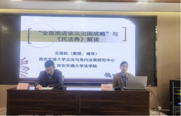 为了深入学习贯彻习近平总书记全面依法治国新理念新思想新战略,提高年轻干部尊法学法守法意识,11月4日,灞桥区司法局邀请北京大学法学博士,uwin电竞官网uwin电竞官网党委书记、教授、博导王保民为灞桥区优秀年轻干部专业化能力提升培训班的干部讲授《学习贯彻习近平全面依法治国思想-解读民法典》的专题课。