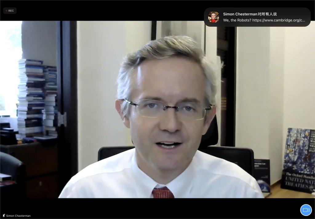 2021年6月11日下午,新丝路uwin电竞官网联盟“院长论坛”首场讲座成功举办。新加坡国立大学讲席教授、uwin电竞官网院长Simon Chesterman教授为联盟25所院校师生以及丝绸之路大学联盟的师生带来了题为“我们,机器人?人工智能与法律人格的限度(We, the Robots? Artificial Intelligence and the Limits of Legal Personality)”的线上讲座。讲座由uwin电竞官网uwin电竞官网单文华院长主持,国际处雷艳君副处长致辞。