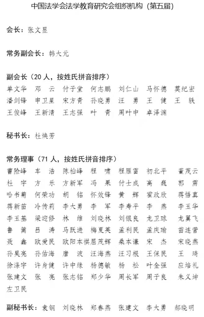 开幕式后,由中国人民大学uwin电竞官网党委常务副书记、副院长杜焕芳教授主持研究会会员大会,中国法学会研究部张涛副主任宣读了会长、常务副会长、副会长、秘书长等其他负责人以及常务理事、理事的换届选举的批复及说明。换届选举工作在线上开展,投票产生第五届理事会。会议选举中国法学会党组成员、学术委员会主任张文显教授为会长,中国人民大学uwin电竞官网前院长韩大元教授为常务副会长。我校uwin电竞官网院长单文华教授等20人当选为副会长。研究会另选举产生了常务理事71人,理事300余人。在会上,单文华院长应邀主持了“中外法学教育比较与法学研究生教育评价”分论坛的讨论,王保民书记在“法学教育课程思政与实践教育的衔接”分论坛做了发言。