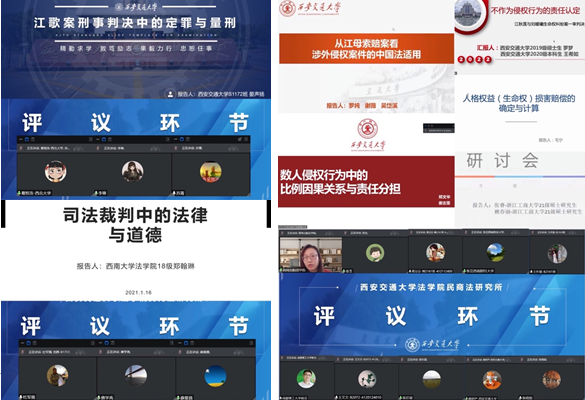 本次研讨会分为三个单元,第一单元“刑事判决中的定罪与量刑(中日对比)”由我院副教授苏青主持。我院副教授李琳和西北大学uwin电竞官网讲师葛恒浩对本单元进行了评议。最后,苏青老师做总结发言;第二单元由uwin电竞官网uwin电竞官网民商法研究所副教授薛华主持,本单元分为五个主题“海外侵权案件的中国法适用”、“不作为侵权行为的责任认定”、“共同侵权行为中的比例因果关系与责任分担”、“人格权益损害赔偿的确定与计算”、“诉讼证据与诉讼当事人”。北京航空航天大学教授张晓茹、副教授高琦、成都理工大学副教授杨会、西南财经大学副教授张芸、我院教授张生、助理教授张珍星及我院博士生王文文、黄豆豆、王作慧、薛舒尹分别进行了评议并提出了自己的观点;第三单元“民法中的法理学”由我院2017级博士研究生刘茜主持。我院副教授杜军强、唐学亮、薛爱昌进行评议。