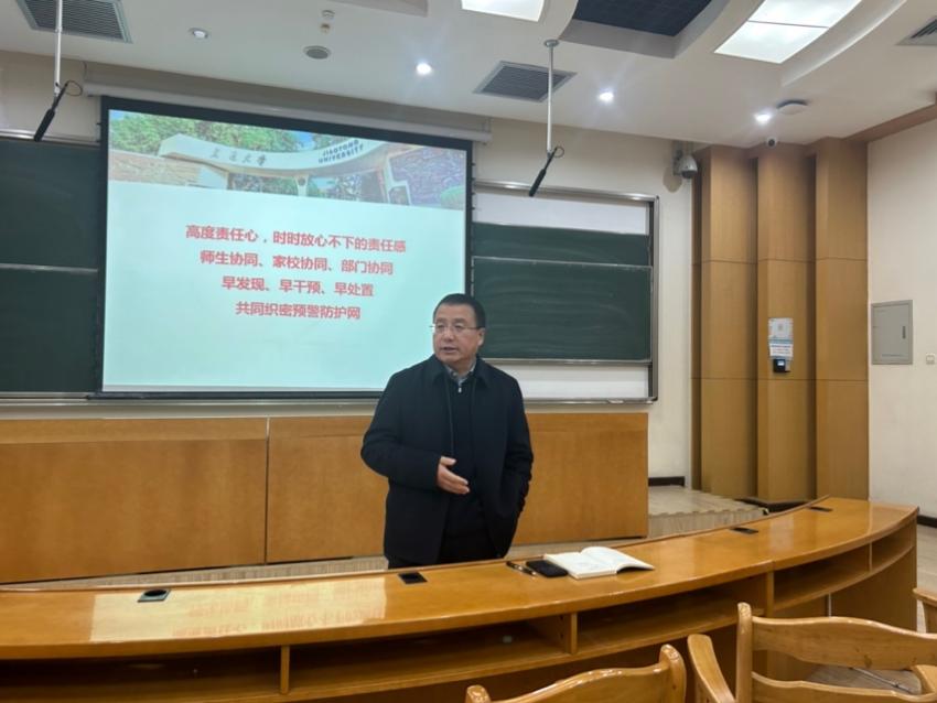 学生工作专职委员张乃钟老师汇报了uwin电竞官网在校研究生基本情况、思政工作队伍及思政教育情况,通过案例讲解面对突发危机事件的预防和处置。结合多年学生管理工作经验,给出研究生导师协同工作建议,倡导“师生协同、家校协同、部门协同,早发现、早干预,共织预警防护网”。