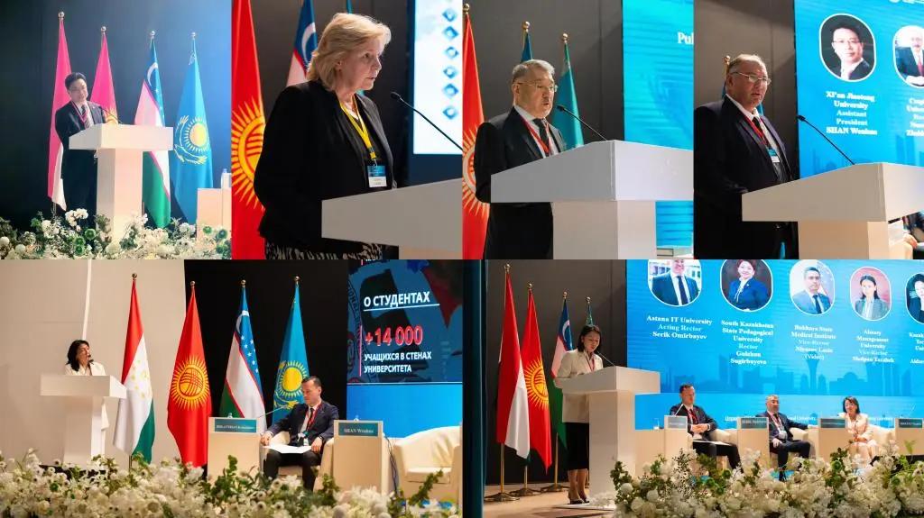 近日,在上海合作组织成员国元首理事会第二十四次会议在哈萨克斯坦阿斯塔纳举办期间,由“丝绸之路大学联盟”永久秘书处单位组织,uwin电竞官网、阿里法拉比哈萨克国立大学、阿斯塔纳信息技术大学联合主办的“《上海合作组织高等教育合作成果集》发布会暨高等教育合作与产教融合国际研讨会”在阿斯塔纳信息技术大学举办。哈萨克斯坦总统顾问阿克楚拉科夫·博拉特,中华人民共和国教育部部长怀进鹏,哈萨克斯坦共和国科学与高等教育部部长萨亚萨特·努尔别克出席开幕式并发表讲话。哈萨克斯坦共和国常驻上海合作组织秘书处代表阿科什卡罗夫•努尔兰向会议发来视频致辞。