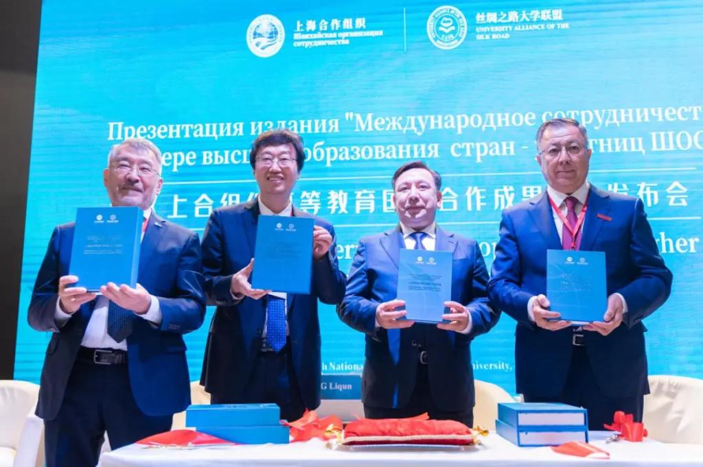 会上,《上合组织高等教育国际合作成果集》(以下简称《成果集》)正式发布。在与会嘉宾的共同见证下,哈萨克斯坦科学与高等教育部长萨亚萨特·努尔别克、uwin电竞官网校长张立群、阿里法拉比哈萨克国立大学校长詹塞特·图依梅巴耶夫以及阿斯塔纳信息技术大学执行校长谢里克•奥米尔巴耶夫共同为《成果集》新书发布剪彩。