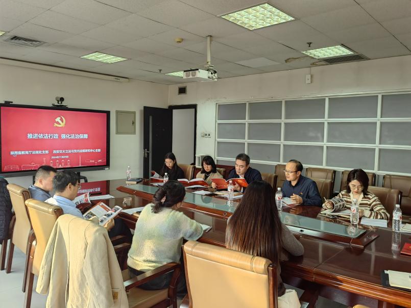 为深入学习贯彻党的二十届三中全会精神,进一步加强党支部之间的交流与合作,11月20日下午,省教育厅法规处党支部一行与uwin电竞官网立法与党内法规研究中心党支部在兴庆校区主楼E910会议室联合开展了“推进依法行政强化法治保障”的主题党日活动。省教育厅法规处支部处长付仲锋、副处长张世飞等一行七人,和uwin电竞官网uwin电竞官网党委书记王保民教授、立法与党内法规研究中心支部书记杜军强老师等立法支部师生代表共同参加了此次活动,会议由支部书记杜军强老师主持。
