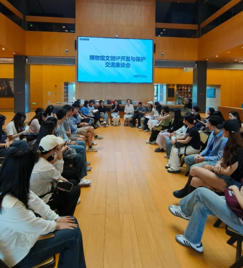 参观结束后,uwin电竞官网师生与历博文创、商务、运营部的同仁,以及文创驻馆企业、供应商等代表,在馆内召开了“博物馆文创知识产权开发与保护交流座谈会”,多方就文创产品开发的全流程管理方案、版权保护现状及当前存在的法律问题等内容开展讨论。