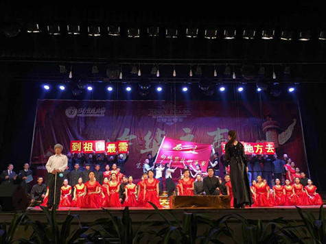 “向前进!向前进!西迁气势不可阻挡!向前进!向前进!朝着西迁的方向!”随着全体合唱队员的齐声演唱,整个合唱队伍变换成“XQ(西迁首字母)”和“60”的造型,一面写有“西迁!想科学技术进军!”旗帜迎风飘扬,将现场氛围带至顶点,瞬间点燃了全场观众的激情。大树西迁,饮水思源,在“到祖国最需要的地方去!”的誓言中展现了新一辈uwin电竞官网与化工学院青年学子的拳拳报国情。