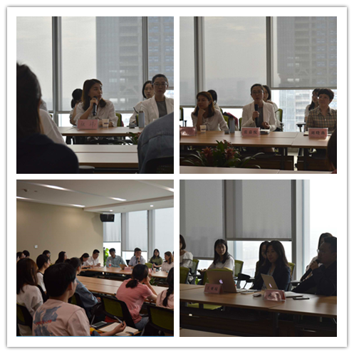 接下来,张嘉悦律师为我们分别介绍了包括武豪、张祎、张晓哲等在内的其他几位在场的青年律师。其中,武豪律师契合本期交流会指导就业的主题,站在自己的角度,向同学们全面比较了公安、检察院、法院、法学科研人员及律师五种法学生就业选择的优缺点,为同学们将来的就业选择提供了良好的参考依据;张祎律师作为一名曾经的“学霸”法学生,她向我们解释了工作态度、执业心态和培养自己的一份特长、喜好的重要性,让同学们更加清楚了律师执业所需要的除专业知识以外的其他重要的能力;张晓哲律师作为一名有着较严重律师执业强迫症的青年律师代表,则向我们陈述了他认为的在校法学生应为将来律师执业培养的几种认识和能力:一是,要意识到自己所毕业的学校只是走向社会的第一步,选择什么样的职业才是决定自己以后包括薪资、社会地位以及人生价值实现与否的关键;二是,要加强自我知识和能力的完善,比如,通过阅读中国裁判文书网上的相关文书来提高自己的文字表达能力等;三是,要相信“颜值即正义”,要努力培养自己良好的职业形象;四是,要积极争取更多数量和种类的实习机会,从实习经验和感受中做出更加适合自己的职业选择。最后,张嘉悦律师总结到:人生最重要的是一个过程,可能你的目标不需要太远大,但是每一个小目标的完成都是自己人生的一种经历和成长。整个交流会过程中,在场的各位律师相互补充、一一地对同学们随时提出的包括律师职业、就业选择等各种问题做了详尽细致的解答。