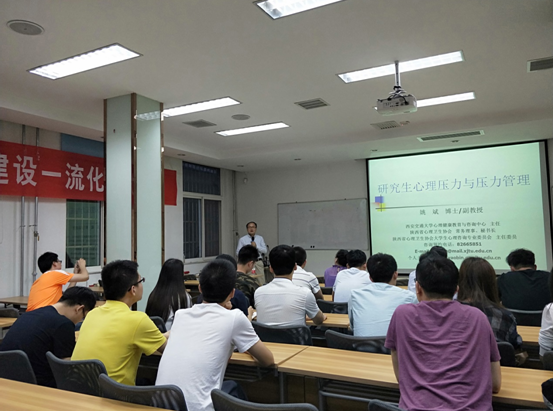 2018年5月24日晚七点半,uwin电竞官网与化工学院在化工学院办公楼106会议室联合举办“研究生压力与压力管理”主题心理讲座。讲座由我校大学生心理健康教育与咨询中心主任姚斌副教授主讲,uwin电竞官网与化工学院30多名研究生参加了此次讲座。