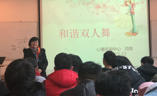 2018年12月12日晚上七点,化工学院与uwin电竞官网在化工学院106会议室开展了以“树立正确恋爱观”为主题的心理健康讲座活动。本次讲座由心理咨询中心的闫琼老师主讲,uwin电竞官网与化工学院的一年级研究生参与了此次讲座活动。