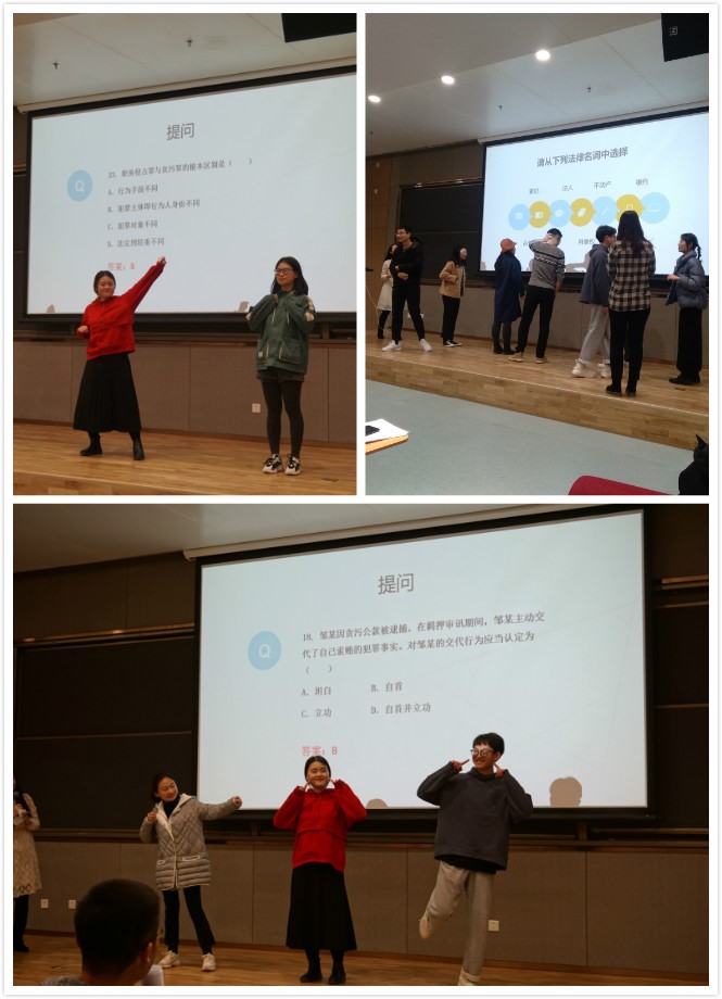 本次竞赛分为八个代表队,每队由三名选手组成。比赛分为四个环节,分别是:法律名词“蹲蹲蹲”、运气“碰碰碰”、法律概念“猜猜猜”以及决胜之战“抢抢抢”。 此次比赛涉及到的法律知识主要是与《宪法》《民法》《刑法》等法律法规相关的内容,目的在于提高同学们学法用法的积极性,让大家懂得在必要时用法律武器保护自己的切身利益。在整场比赛过程中,各组参赛选手都表现十分出色,现场气氛热烈,掌声不断。