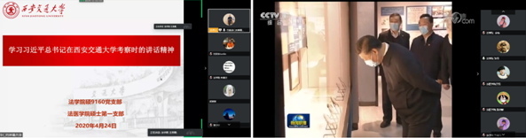 活动伊始,法医硕士党支部书记刘军林通过播放视频的形式,带领大家重温了习近平总书记在uwin电竞官网考察调研时的重要讲话,两院学子深受感染,纷纷连麦发言,交流心得体会。