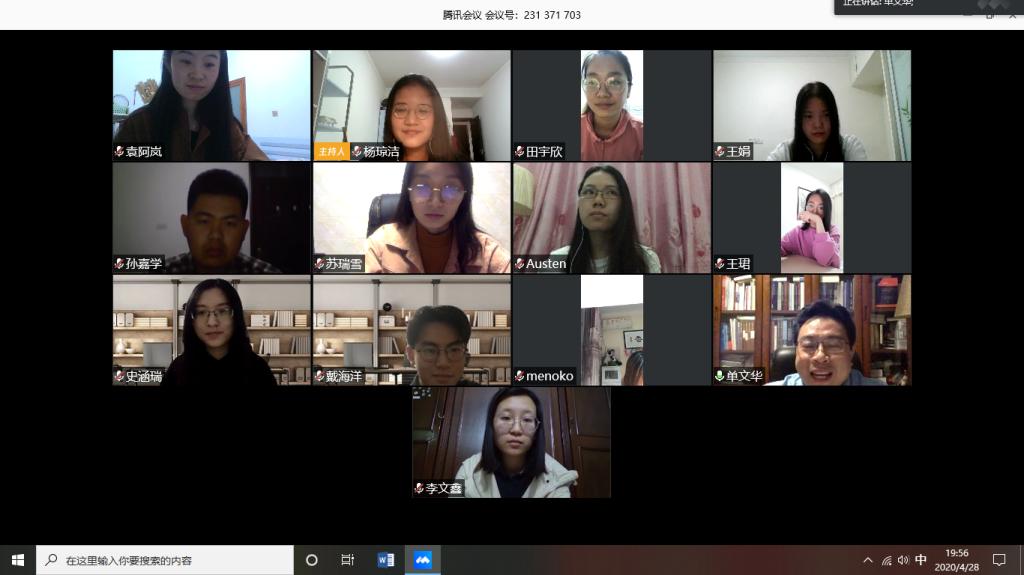 4月28日晚,uwin电竞官网硕2018级党支部组织开展线上组织生活会,会议的主题以习近平总书记考察uwin电竞官网,并鼓励交大师生努力发扬西迁精神,争做时代新传人为背景,支部特别邀请了uwin电竞官网副院长丁卫老师与同学们一起交流学习,会议由支部书记谢雨蓉主持。